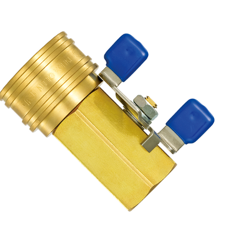 TSP快速接頭和球閥一體化。 連接狀態(tài)(閥門打開時(shí))防止意外脫離的 套環(huán)鎖扣功能裝置。